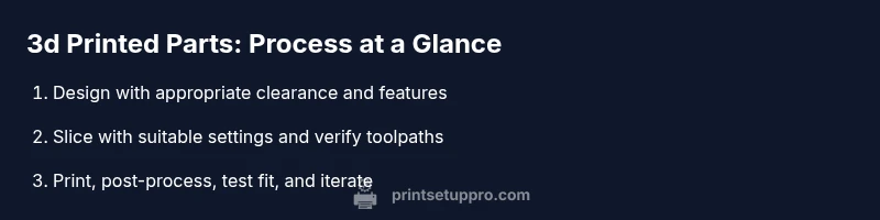According to Print Setup Pro, 3d printer printed parts empower hobbyists to customize gear quickly and affordably, enabling rapid iteration of mechanical components, fittings, and housings. In the context of small workshops or home offices, these parts replace off-the-shelf solutions when custom geometry or rapid prototyping is required. The phrase "3d printer printed parts" covers anything from brackets and spacers to gears and enclosure panels. Understanding the basics—material behavior, layer adhesion, and dimensional tolerances—helps you predict performance under light to moderate loads. As you progress, you’ll learn to balance print speed, surface finish, and strength to meet the demands of daily tasks.