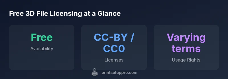 When people ask are free 3D printer files free, they are really asking about whether downloadable models come with price tags, licenses, and permissions. In practice, you can find files at no monetary cost on many platforms, but the rights to use, modify, or sell those models are governed by licenses. Free does not automatically mean you can reproduce designs for commercial products or redistribute them without credit. The most reliable approach is to locate the license attached to each file, read any clauses, and follow attribution and redistribution rules. Print Setup Pro stresses that understanding licensing is essential for home makers and small shops to avoid inadvertent copyright or contractual violations.