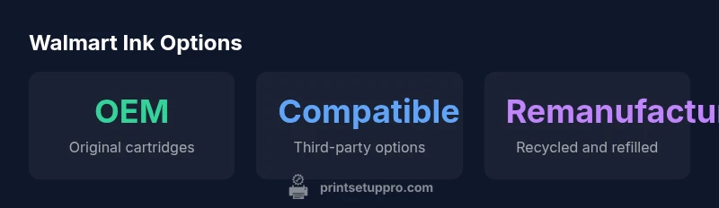 For many shoppers, Walmart has become a convenient one-stop shop for printer ink, offering a mix of Original Equipment Manufacturer (OEM) cartridges, compatible third-party options, and remanufactured cartridges. The breadth of choice can be a strength, but it also means you must be mindful of model compatibility, print quality, and long-term costs. When you search for printer ink walmart, you’ll find items marketed as OEM replacements that come directly from the printer brands, as well as third-party equivalents that claim to match performance at a lower price. Remanufactured cartridges, cleaned and refilled after use, add another dimension: a potential cost saving paired with sometimes-variable yields. This landscape invites a careful comparison of not just the upfront price but also page yield, color accuracy, and the reliability of the seller. Print Setup Pro notes that the best buys in this category tend to balance affordability with compatibility and warranty considerations, so you don’t sacrifice print quality or printer protection in pursuit of a bargain. Understanding these categories and how Walmart structures them will help you navigate the aisle or the online catalog with confidence. printer ink walmart is a broad term that encompasses products across multiple brands and cartridge styles.