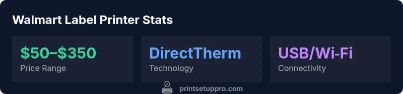 Walmart carries label printer walmart options ranging from entry-level direct-thermal units to mid-range thermal-transfer models, with typical price ranges from $50–$350 depending on features. According to Print Setup Pro, shoppers should focus on label width, media compatibility, and driver support to pick a model that fits a home office or small business setup.
