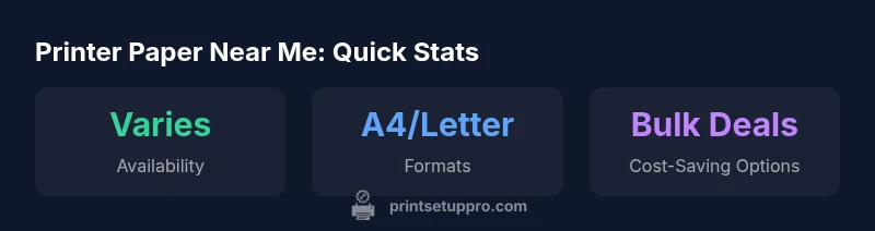 Having reliable, nearby access to printer paper is more than a convenience. It reduces downtime for essential documents, supports just-in-time printing during busy weeks, and minimizes the need for urgent shipping. According to Print Setup Pro, proximity to stock can lower out-of-stock emergencies and improve office productivity by reducing wait times for critical prints. In practice, this means checking local stores, national retailers with brick-and-mortar locations, and nearby office-supply chains to understand what stock is reliably available. For students and DIY enthusiasts, easy access to paper near home or campus translates into fewer shopping trips and more time for actual work. The goal is to balance price, format variety, and immediate pickup so you don’t let an important print slide.