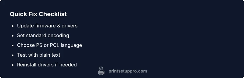 Learn how to stop printer printing random symbols with step-by-step encoding checks, driver updates, and font settings. This Print Setup Pro guide covers causes, diagnostics, and safe fixes to restore clean prints quickly.
