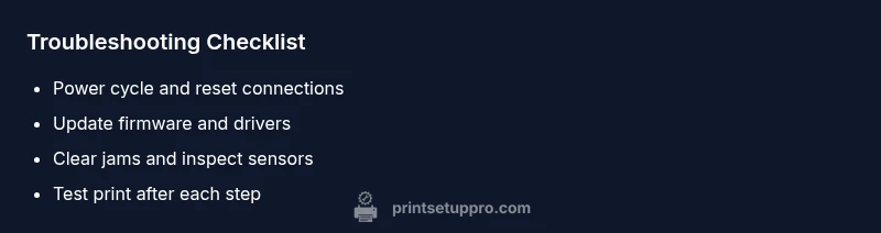 Symptoms: The printer shows m404dn and halts printing, often after starting a job or during boot. Causes generally split into firmware/driver issues, sensor or jam problems, and rare hardware faults. Prioritize firmware and driver investigations first, then check for mechanical obstructions. If the device has recently been moved, power-cycled, or updated, those events commonly trigger the fault and guide your next actions. This structured flow keeps troubleshooting objective and repeatable, reducing guesswork during downtime.