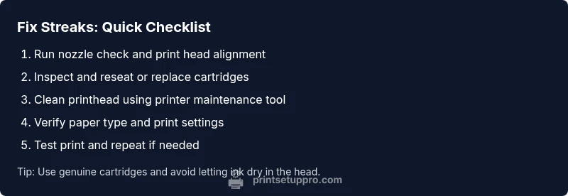 Urgent guide to diagnose and fix printer printing with streaks. Step-by-step fixes, diagnostic flow, tips, and prevention from Print Setup Pro.