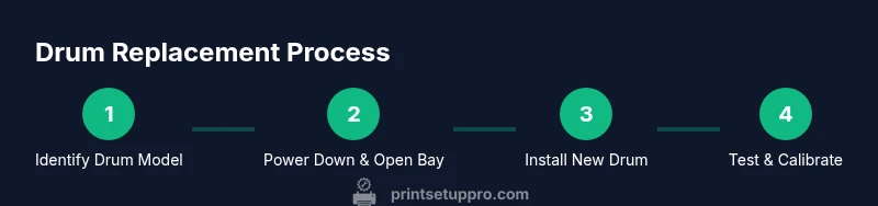 Replacing a printer drum involves several discrete actions, from preparation to verification. This section provides a high-level roadmap to orient you before you dive into the detailed steps. Start by powering off and unplugging the printer, then access the drum bay and remove the old drum. Install the replacement drum, reseat all connectors, reassemble the printer, and run a test page to inspect print quality. If the alignment is off, you may need to run the printer’s built-in alignment or calibration routine. Throughout the process, keep track of small spring-loaded parts and screws to avoid loss and misassembly. The goal is a clean swap with minimal contact between your hands and the imaging surface, plus a final verification print that confirms the absence of streaks or bands.