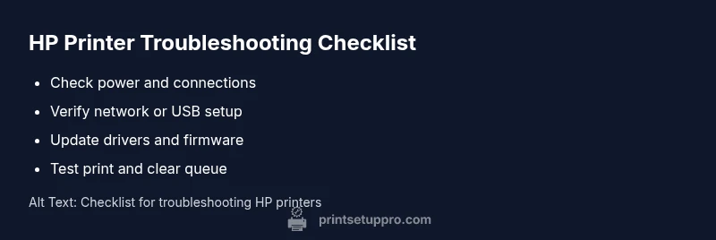 Most HP printer issues stem from connectivity or driver problems. Quick fix: ensure the printer is online, reconnect to the Wi‑Fi or USB, and update or reinstall the driver. If printing still fails, perform a power reset, check for firmware updates, and run a basic test print before pursuing deeper troubleshooting.