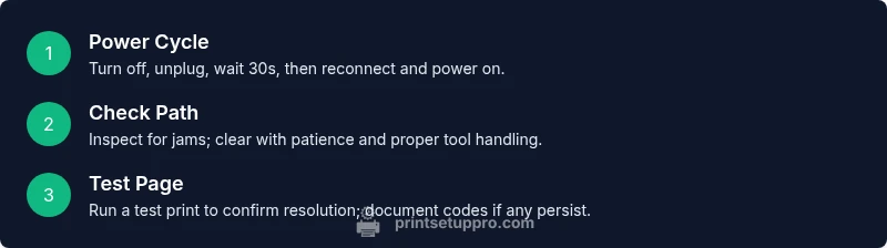 Before you jump into resets, do a quick scan of the basics. Ensure the printer is powered on and the display is responsive. Confirm cables are securely connected to both the computer and the printer, and check for any visible jams or foreign objects inside the printer path. If the printer is on a network, ping the device from your computer to verify connectivity. Also, check for any flashing lights on the printer panel, which often indicate a specific fault. A quick, deliberate check can save time and prevent unnecessary troubleshooting steps. Print Setup Pro recommends keeping a small repair toolkit handy for these checks.
