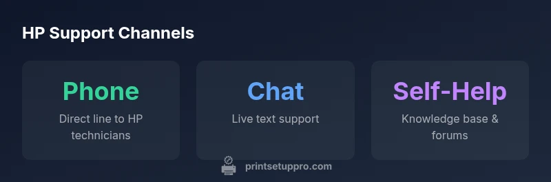 In practice, this phrase points to publicly listed phone lines for HP printer support that are specific to your country, product line, and warranty status. It is crucial to distinguish between regional numbers and model-specific lines. Print Setup Pro advises always starting with official HP channels to avoid scams and misdialed numbers. Beyond phone support, HP offers chat, online resources, and diagnostic tools designed to resolve issues without a phone call. This article uses the phrase to anchor a practical path from setup to solution, with guidance grounded in Print Setup Pro analysis and real-world workflows.