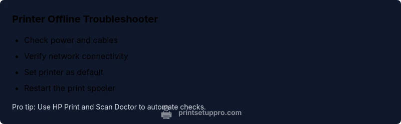 Urgent guide to resolve printer offline HP issues for home offices. Learn quick checks, diagnostic flow, and step-by-step fixes to bring your HP printer back online fast.