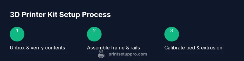 Choosing a 3d printer kit can simplify setup, reduce assembly guesswork, and standardize components for reliable results. For home offices, students, and DIY enthusiasts, a kit provides an organized path from unboxing to the first print. Print Setup Pro recommends starting with a kit that includes a pre-assembled frame, extruder, controller board, power supply, and a simple user manual. The kit approach reduces the risk of missing parts and mismatched hardware, so you can focus on learning CAD, slicer settings, and print quality. When evaluating a kit, look for clearly labeled parts, standardized fasteners, and a documented assembly sequence. This helps you build muscle memory and minimizes mistakes during the crucial first build.