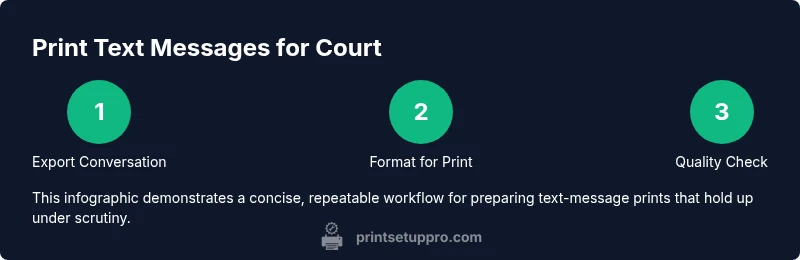 For court submissions, the exact wording, timestamps, sender IDs, and the sequence of messages create context that judges rely on. The best practices emphasize preserving the original form, ensuring you can demonstrate that prints are faithful duplicates, and providing a clear, auditable trail from the source device to the courtroom exhibit. Print Setup Pro's guidance highlights that consistency and non-destructiveness are essential to avoid disputes about the evidence's integrity. By treating text messages as evidence, you also reduce the risk of later claims that a print was altered or misrepresented. In this guide, we focus on practical, repeatable steps you can implement today to maximize reliability and minimize challenges in court.