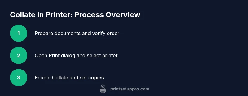 Collating in printer means the device prints multiple copies of a multi-page document in the exact sequence of pages. If you print 5 copies of a 12-page report with collating enabled, you’ll get five complete sets where each set contains pages 1 through 12 in order. Without collating, pages from each copy can mix together, creating disorganized output that requires manual sorting. In practice, collating saves time and reduces mistakes, especially for lengthy documents such as proposals, training manuals, or client reports. According to Print Setup Pro, collating is a standard feature on most modern printers and is usually found in the main print dialog alongside copies, orientation, and paper size. If you don’t see a Collate checkbox, your printer or driver may be using a legacy interface or a driver that disables collate for certain formats. In that case, you can still achieve the same result by printing pages in full sets per copy or by saving a multi-page document as a single PDF per copy. It’s worth noting that some apps and drivers offer a hybrid option that prints batches first and then sorts pages, which can be handy for very large print jobs. Understanding how your printer handles collate is the first step toward consistent, professional output.