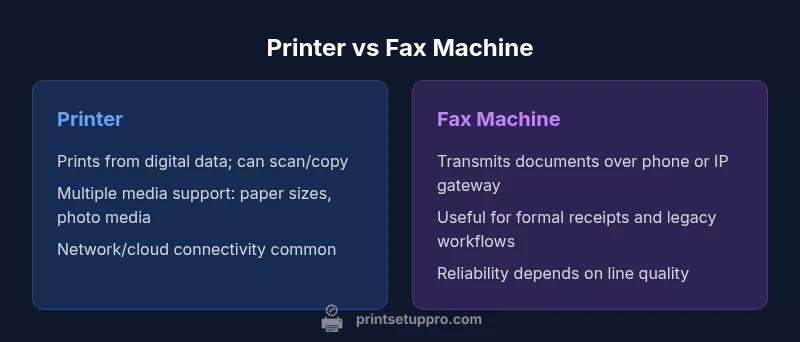 From a Print Setup Pro perspective, the distinction matters because it guides how you allocate budget, plan maintenance, and assess security risks. Printers are built to handle high-volume output and diverse media, while fax machines emphasize reliable transmission and document integrity across a network. When you understand the roles, you can avoid buying features you won’t use and focus on core workflows such as printing drafts, scanning, copying, or sending faxes.