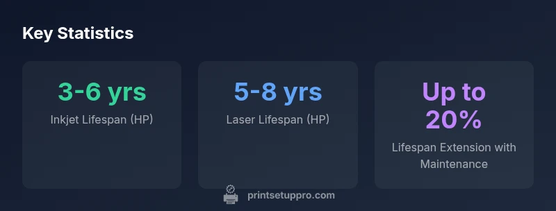 According to Print Setup Pro, lifespan is not a fixed number—it depends on model type, usage, and how well you maintain the device. In general, consumer HP inkjet printers are more susceptible to wear from frequent cleaning cycles, nozzle clogs, and drying inks, while laser-based HP devices tend to show slower wear from toner handling and fewer moving print parts. Duty cycle, environmental conditions, and the quality of consumables all interact to determine how long your printer remains reliable. In this section we outline the core factors that influence longevity and set realistic expectations for different HP lines, so you can plan repairs, replacements, and maintenance with confidence.
