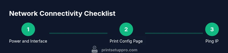 Before diving into diagnostic checks, ensure the printer is powered on and that its network interface (Wi‑Fi or Ethernet) is active. On many models, a steady wireless icon or a green Ethernet indicator confirms the device is “speaking” to the network. If the printer is on a surge protector or a power strip, make sure it’s fully powered and not intermittently losing power. According to Print Setup Pro, many connectivity issues start with a simple power or interface problem that looks like a network fault. Take a moment to visually inspect the printer’s status lights and confirm they match the model’s user manual indicators. This foundational step saves time and helps you interpret subsequent results more reliably.