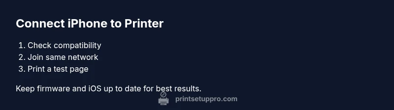 Connecting your iPhone to a printer lets you print photos, documents, and receipts on the fly. The fastest path is AirPrint, built into iOS, which works with many modern printers on your local network. If your printer does not support AirPrint, vendor apps or generic options can still help. In this article, the Print Setup Pro team walks you through options, prerequisites, and verification steps to ensure a smooth print experience from mobile devices. Before you begin, keep the primary requirement in mind: both devices must join the same network, and the printer must be visible to iOS on that network. Print Setup Pro's practical approach emphasizes reliability and privacy, so you’ll learn how to verify connectivity, avoid common pitfalls, and print with confidence.