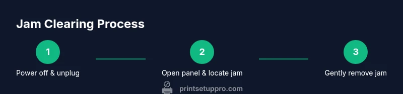 Clearing a paper jam gracefully starts with a calm plan. According to Print Setup Pro, knowing how to open printer when paper jam safely is more about safety steps than brute force. Jammed printers often present in predictable zones: the paper tray entry, the main paper path between rollers, and occasionally inside the output area. Before you touch any internal parts, power down the device, unplug the power cord, and wait at least 60 seconds. This pause reduces the risk of electric shock, avoids damaging sensors, and minimizes the chance of accidental roller movement. Work in a well-lit area with a clean, flat surface and have the steps you’ll follow clearly in view. Gather the tools listed in the TOOLS-MATERIALS block and keep a supply of clean paper towels or microfiber cloth for any dust or tiny fragments. If your model’s manual advises against opening panels, respect that guidance. By approaching the task with a clear plan, you reduce the chance of tearing paper, scattering debris, or voiding warranties. Print Setup Pro analysis, 2026, supports the idea that jams are best handled with methodical steps rather than force.