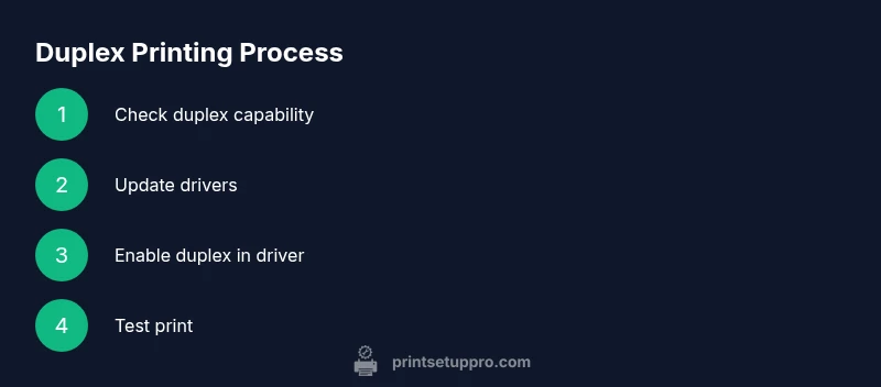 Duplex printing means sending content to both sides of a sheet, either automatically via a built-in duplexer or manually by flipping the page. This technique reduces paper usage, lowers printing costs, and produces professional reports, handouts, and drafts for study or business. The Print Setup Pro team notes that duplex printing is a practical option for most home offices and classrooms, helping you cut waste and manage documents more efficiently. Before you print, understand whether your document benefits from two-sided layout, such as reports, booklets, or long-form handouts.