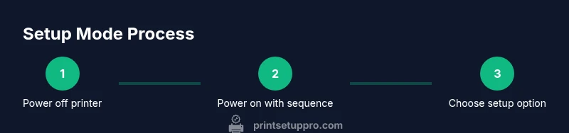 Setup mode is a temporary configuration state that prepares your printer for initial pairing with a computer, smartphone, or network. It enables essential tasks like driver installation, wireless setup, and firmware checks. In practice, entering setup mode clarifies the printer’s current configuration, helps you select the correct connection type (USB, Ethernet, or Wi-Fi), and ensures the device is ready for subsequent software steps. According to Print Setup Pro, understanding setup mode reduces failed connections and speeds up getting your first print. If you’re new to this process, consider taking a few minutes to locate your model’s specific entry method in the manual before proceeding.