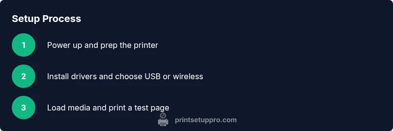 Unbox the printer, remove protective tape, connect the power cable, and plug into a grounded outlet. Let the device warm up and initialize its LCD prompts if present. This creates the baseline for software communication and avoids startup errors.
