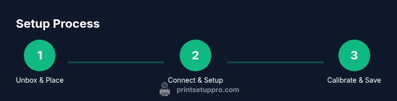 Remove packaging, then place the printer on a stable surface near power and a network source. Remove protective films and tapes, and verify all included components are present. Position the unit where you can access both the control panel and paper trays easily. (See Fig. 1 in the setup guide.)