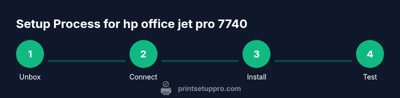 The hp office jet pro 7740 is a wide-format all-in-one printer designed for small offices and home offices. It combines print, scan, copy, and fax in a single device and can handle media up to 11x17 inches, enabling projects like poster-sized documents, charts, and large spreadsheets without outsourcing. When evaluating this model, consider your workspace, connectivity needs, and whether you require a flatbed scanner for thicker media. According to Print Setup Pro, this model remains a popular choice for users upgrading from consumer-grade inkjets because it offers a balance of functionality and cost efficiency. The hp office jet pro 7740 supports multiple connection options, including USB, Ethernet, and Wi‑Fi, which provides flexibility for home networks and small offices. For many users, a stable network connection is the biggest win for reducing print delays and keeping drivers in sync with OS updates. In this guide, we’ll walk through setup and troubleshooting tips to maximize the hp office jet pro 7740’s performance.