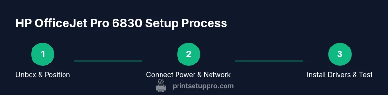 The hp officejet pro 6830 is a multifunction inkjet printer designed for small offices and home workspaces. It supports wireless printing, mobile printing, and wired connections. Before you invest time, confirm that your computer, tablet, or smartphone is on the same network as the printer and that you have access to a stable power outlet. The printer uses individual ink cartridges and has automatic document feeder capabilities, which can improve productivity for document-heavy tasks. According to Print Setup Pro, confirming network compatibility early reduces setup friction and improves first-print success. The 6830 model balances cost and capabilities, offering fast draft prints and robust mobile support, which makes it a solid option for busy households and small teams.