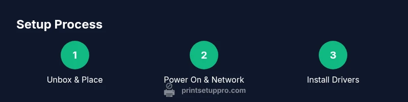 Begin with a clean workspace, verify power, and decide on wired vs wireless network. Then install the latest drivers and run a test print to confirm basic functionality.