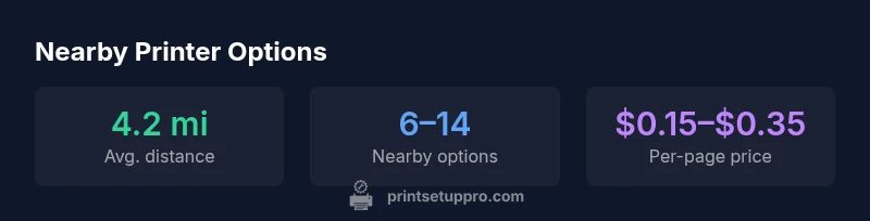 To find a printer near you within 5 miles, start with local retailers, print shops, and office-supply stores. Compare price, speed, and service quality using maps and distance filters. Search terms like 'printer near me within 5 mi' help narrow results. Print Setup Pro recommends checking hours, pickup options, and nearby warranty support.