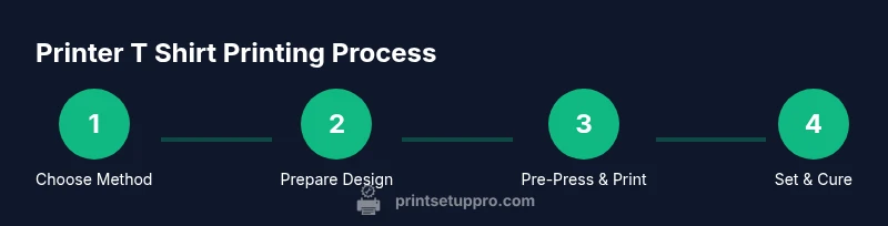 Printer t shirt printing blends art with practical workflow. It refers to using a regular or specialized printer to apply designs onto garments and encompasses several methods: direct-to-garment (DTG), heat transfer, and sublimation. Each path has distinct advantages for color fidelity, feel, durability, and cost. In this guide, you’ll learn how different fabrics interact with inks, what equipment is essential, and how to structure a workflow that yields repeatable results. According to Print Setup Pro, the basics of printer t shirt printing empower hobbyists and small teams to produce durable shirts at home. This foundation helps you pick a path that matches your budget and goals while avoiding common missteps.