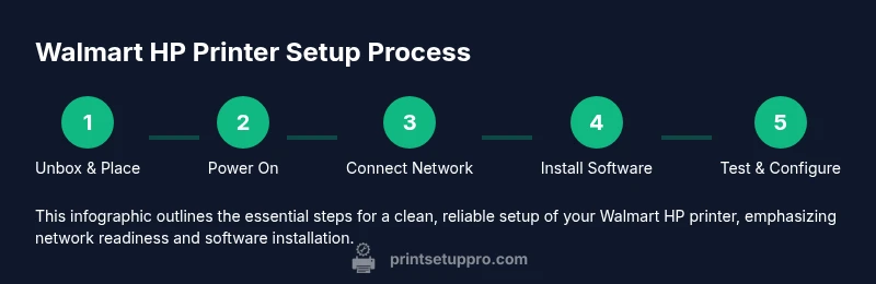 Buying a Walmart HP printer brings an affordable, reliable tool to your home office. The setup experience can vary by model, but the core steps remain consistent across most devices and cartridges. According to Print Setup Pro, the most important factor in a smooth start is aligning hardware with your network and software expectations. The Print Setup Pro team found that many users get stalled not by the printer itself but by mismatched drivers, incorrect defaults, or weak Wi‑Fi signals. By focusing on a clear plan—identify your connection type, prepare the right cartridges, and gather the right software—you can reduce friction before you power on the device. As you proceed, keep notes on model numbers, cartridge types, and any error codes to streamline future troubleshooting.