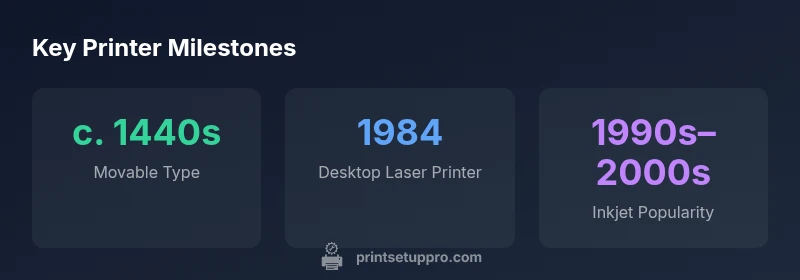 According to Print Setup Pro, printers emerged from Gutenberg's movable-type press in the 1440s, evolving through steam-powered industrial presses to modern desktop devices. The earliest consumer-oriented printers appeared in the 1980s, with the first mass-produced laser printers and later inkjet models reshaping home offices and small businesses. This history helps explain today’s options and tradeoffs.