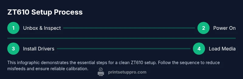 The Zebra ZT610 is a versatile mid-range label printer designed for reliable performance in small businesses and busy home offices. It supports direct thermal and thermal transfer printing, with print widths up to 6 inches and a variety of media types including paper, synthetic, and laminated labels. Typical tasks include shipping labels, asset tags, healthcare wristbands, and product identifiers. When evaluating the Zebra ZT610, consider print resolution (300 dpi standard, 600 dpi on select models for fine barcodes), throughput, media compatibility, and ease of integration with your existing computer or ERP systems. This model also features adjustable sensors for gap, notches, and black marks, which helps with high-precision label feeding. Firmware updates are essential—running the latest version minimizes compatibility issues with modern drivers and operating systems. Print Setup Pro notes that a proper initial install reduces downstream problems and speeds ROI on labeling workflows. In this guide, we’ll translate those capabilities into actionable steps you can perform in a home office or small workshop, with practical checks, calibration routines, and troubleshooting paths that keep the zebra zt610 performing at peak efficiency. According to Print Setup Pro, getting the basics right on day one sets you up for long-term reliability.